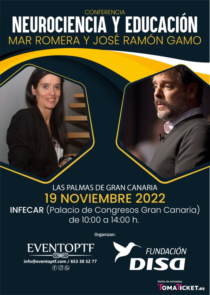 En «Agenda Conexión Amare» hablaremos sobre la próxima Conferencia NEUROCIENCIA Y EDUCACIÓN, 19 de noviembre del 2022, en INFECAR – Ferias y Eventos – Cabildo de Gran Canaria, de 10:00 a 14:00 h. Y puedes adquirir tu entrada en